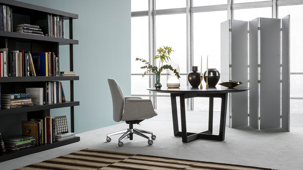 The DownTown Conference office chair is upholstered in Pelle Frau® leather or in fabric. This Italian office chair has a five-spoke base. Sophisticated and timeless, the DownTown Conference desk chair is the ideal complement for working or learning settings, designed for sophisticated personalities who seek equally comfort and elegance. is upholstered in Pelle Frau® leather or in fabric. This Italian office chair has a five-spoke base. Sophisticated and timeless, the DownTown Conference desk chair is the ideal complement for working or learning settings, designed for sophisticated personalities who seek equally comfort and elegance.