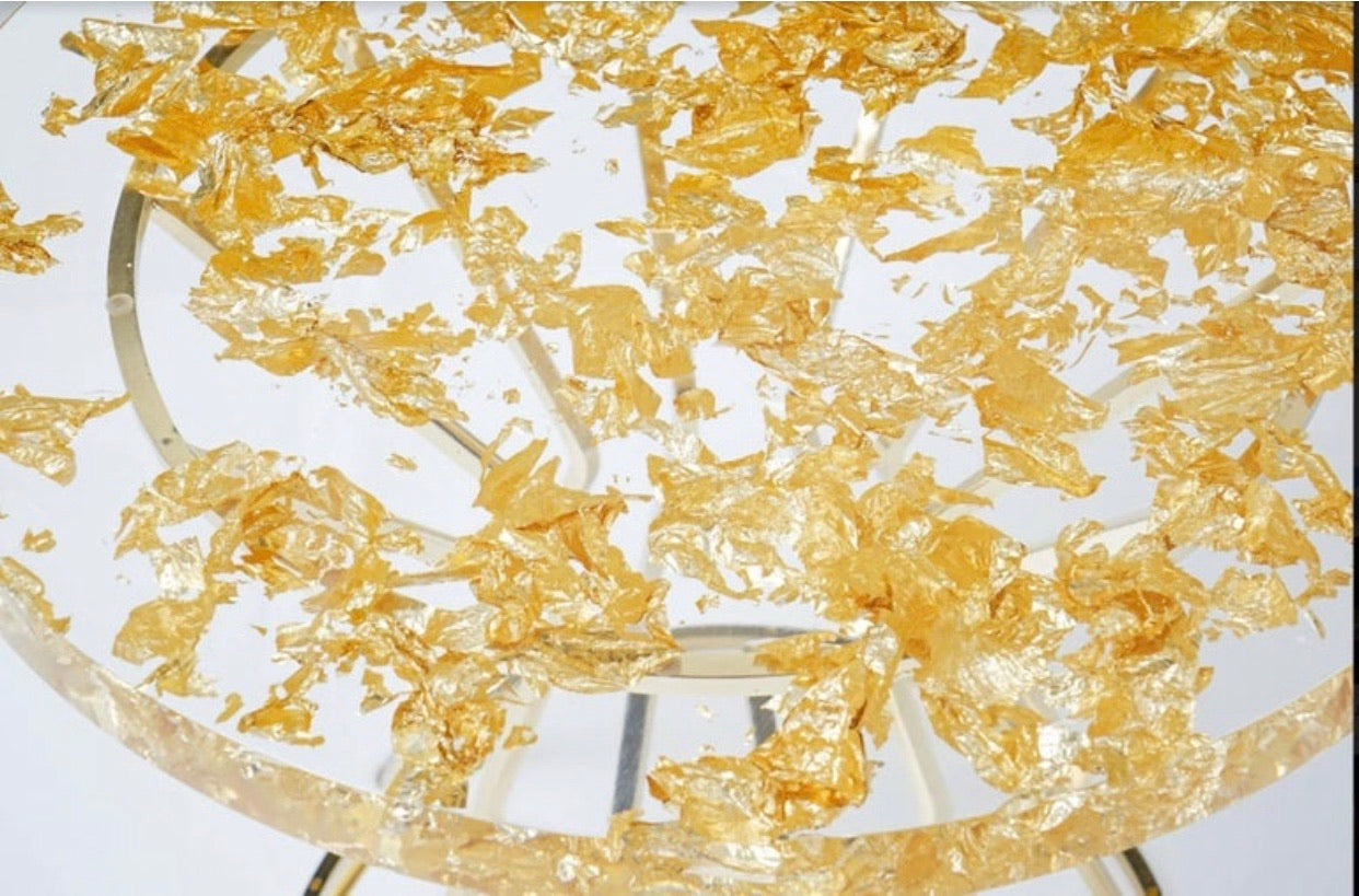 24k Gold Leaf Elements Epoxy Resin End Table
