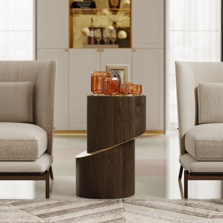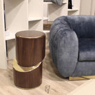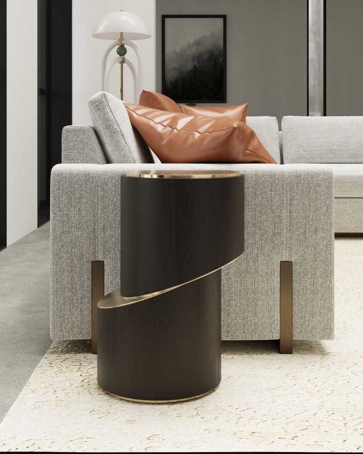 Challenging the physics expectations, the Absolute Side Table creates an intrinsic harmony between the rich walnut veneer and the polished brass details. These two materials were welded together to set a contrast that defies the eye perspective. Thought to complement any modern living room.