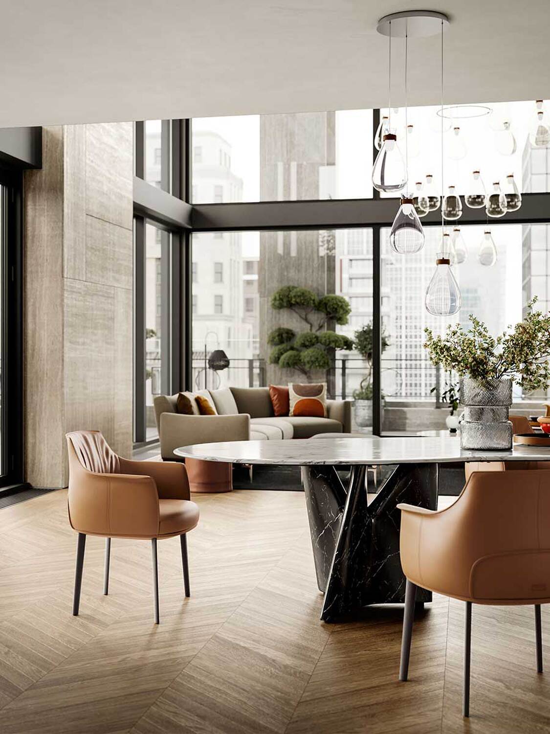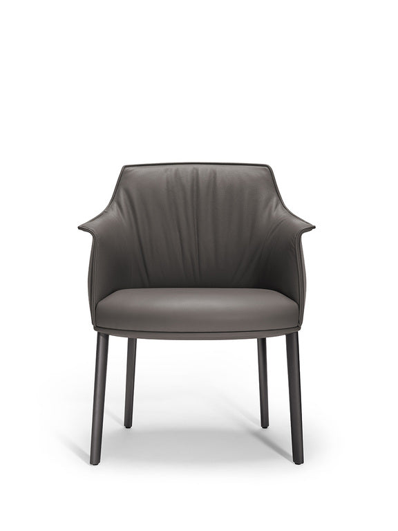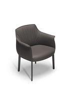 The Archibald Large Dining Chair differs from the original model by way of its broader seat and higher back. The frame and armrests are made of rigid polyurethane obtained by molding, while the inner padding is comprised of soft molded polyurethane and polyester wadding. The seat frame is in birch plywood, again with polyurethane foam padding and wadding. The spring system is comprised of elastic springs.
