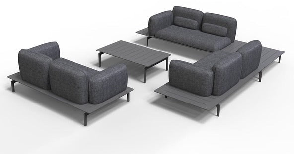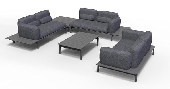 note: The set includes two without arm two seater sofa, one with both arms sofa, a corner coffee table and Center coffee table