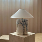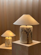 - Crafted from exquisite Italian Calacatta Oro marble, this table lamp showcases striking gray-black textures elegantly interlaced with luxurious golden veins. Each piece carries the timeless beauty of nature, encapsulating millions of years of Earth’s artistry within your space.