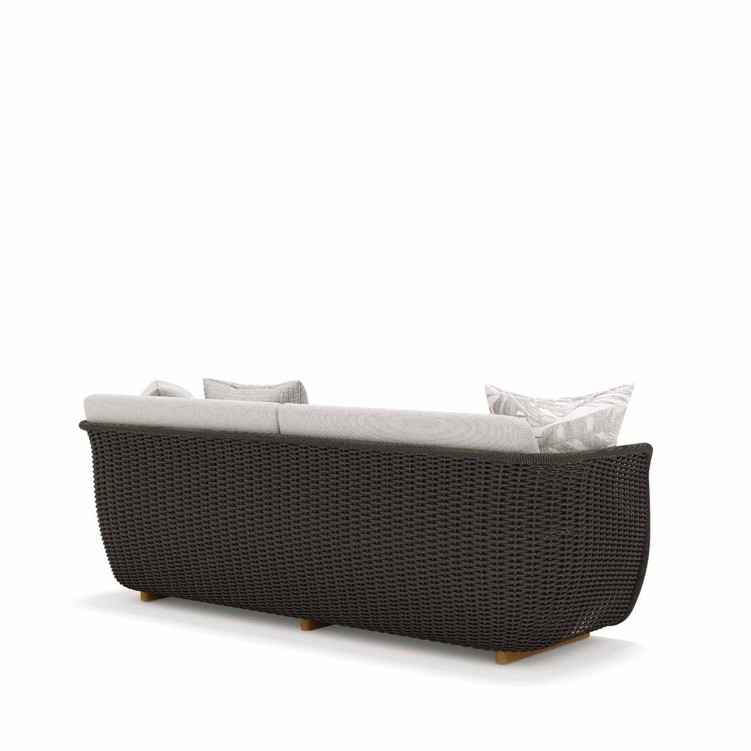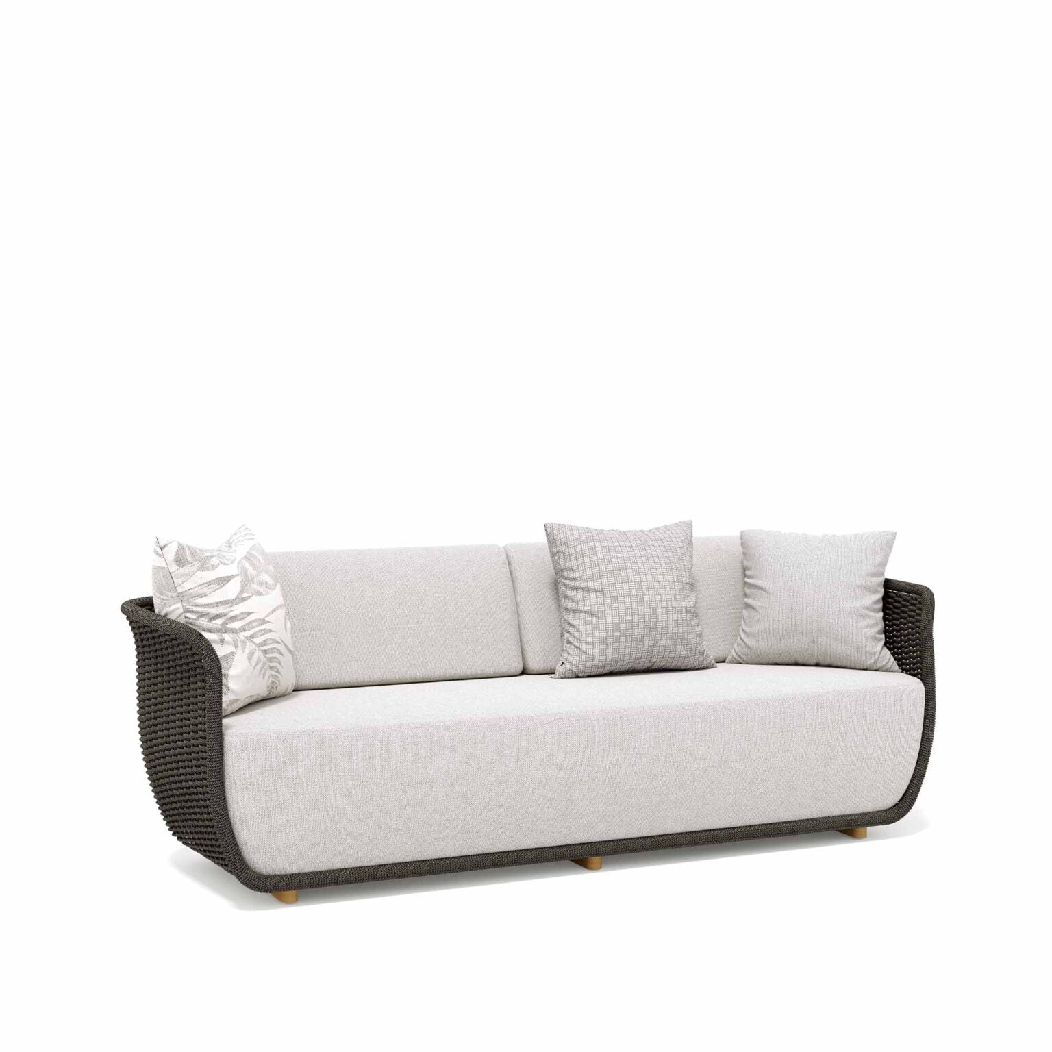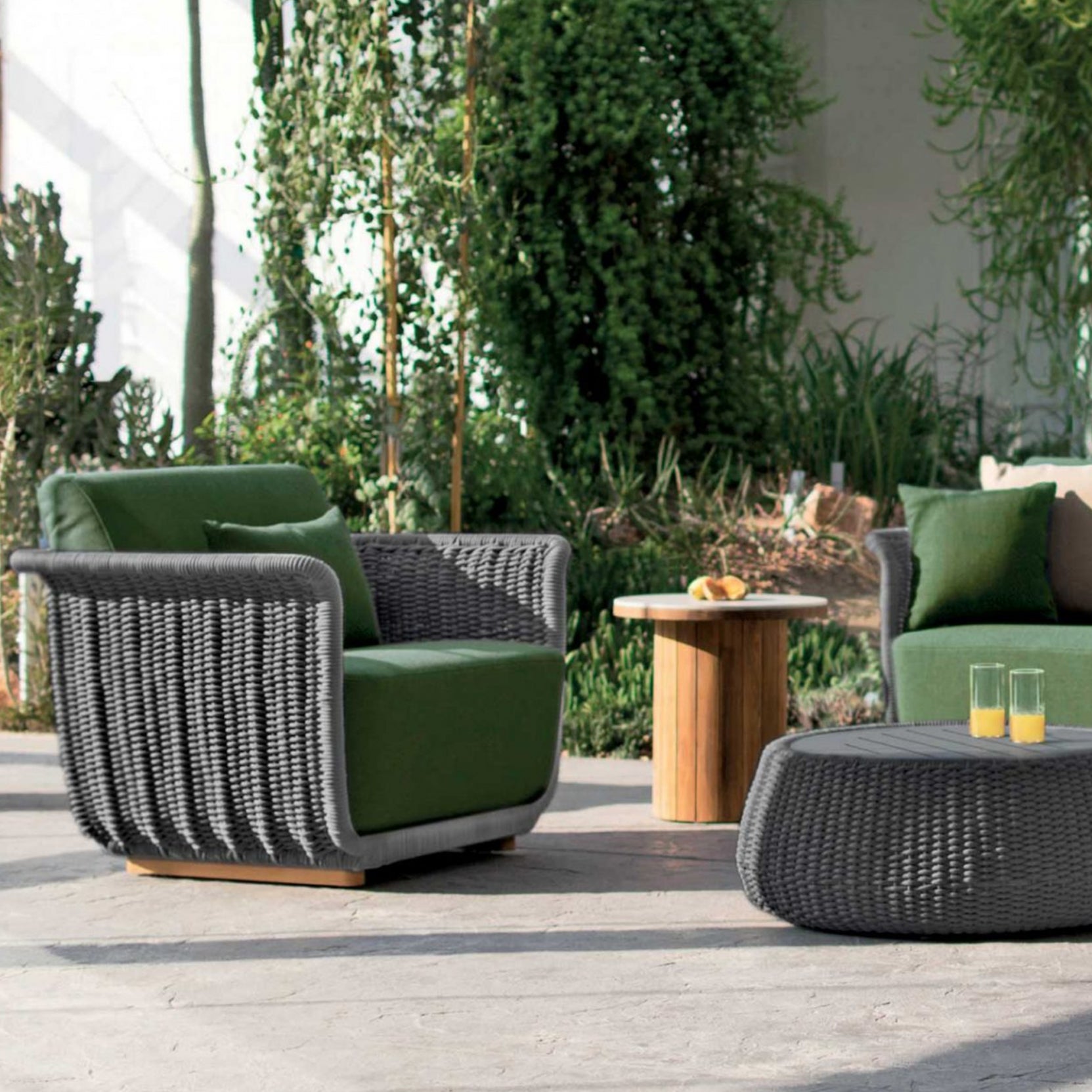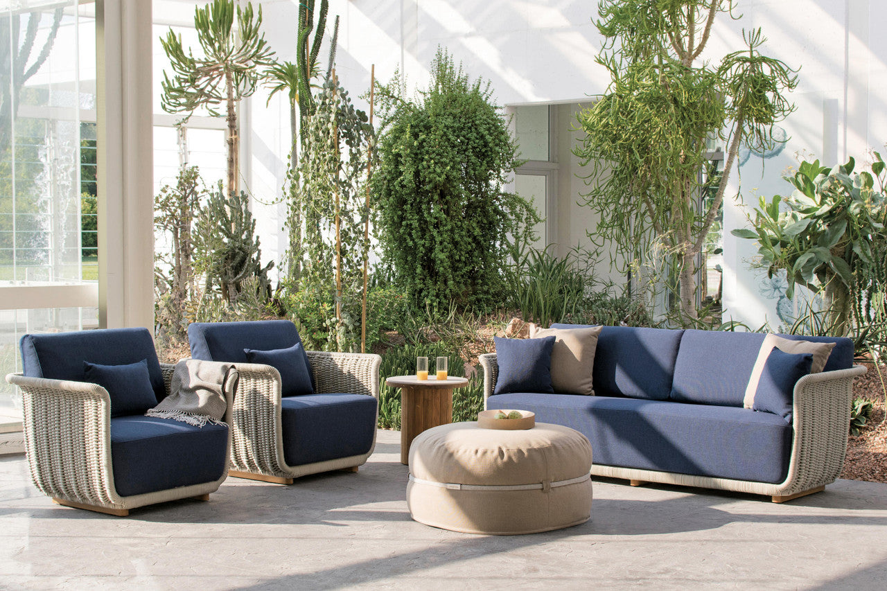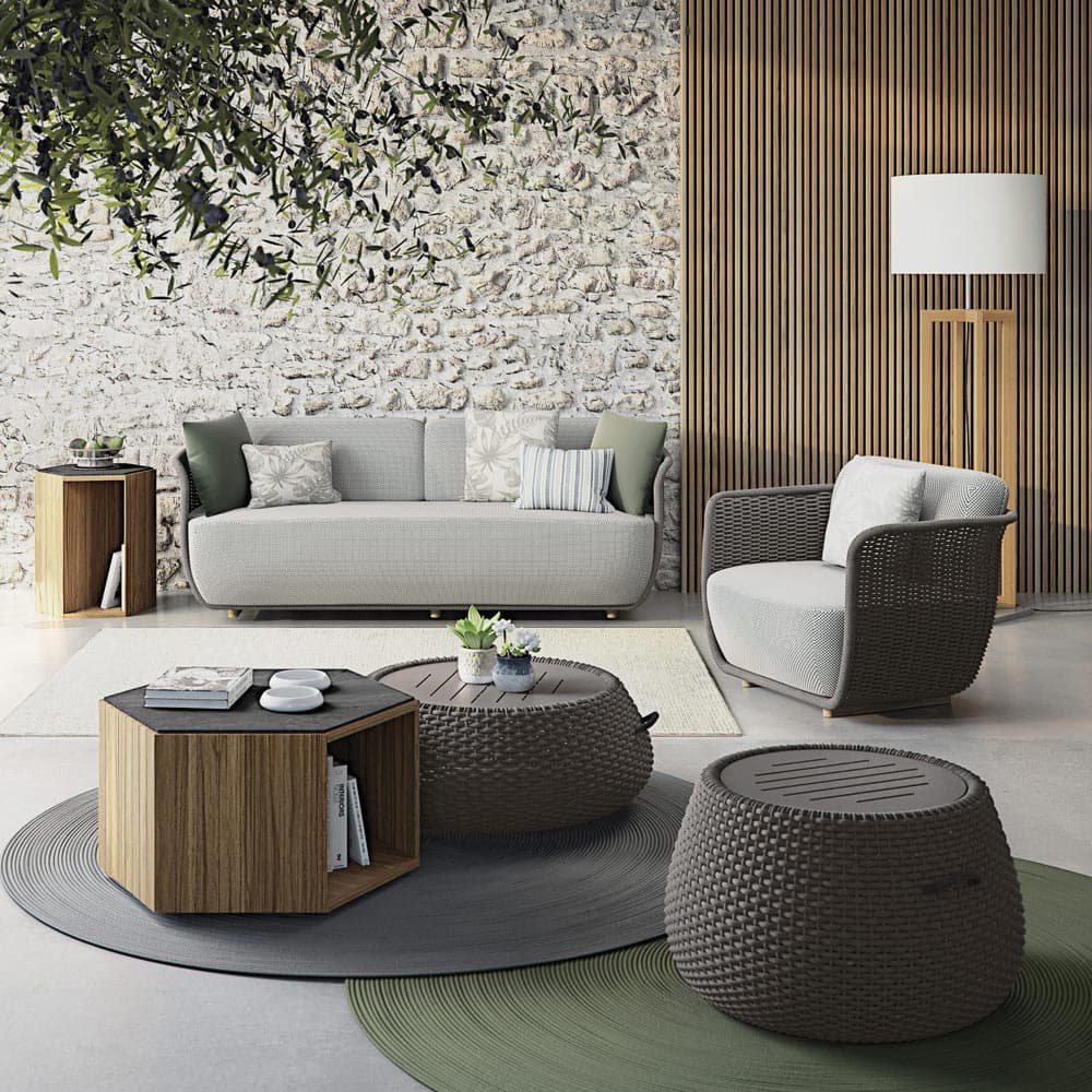 Subtle chromatic assonances drawn by the hand-woven rope, a unifying element of the entire Bellagio collection.