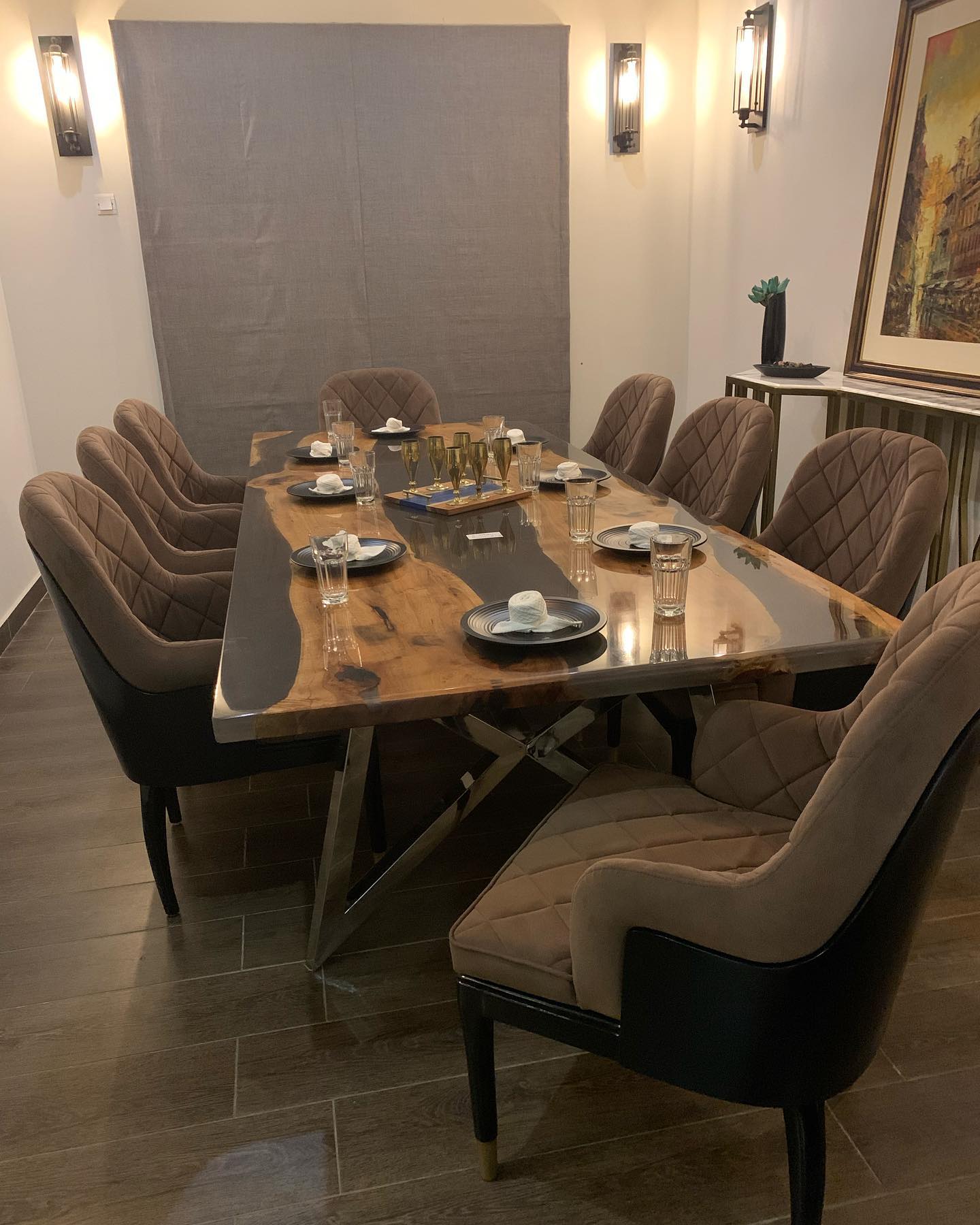 Double Scalene Epoxy Resin Live Edge Dining Table