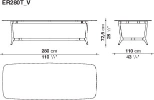 The Erica dining tables are offered in a rectangular version in two sizes and a round version in a single size. They combine powder-coated die-cast aluminium structures in five colours – anthracite, dove grey, olive bronze, aquamarine green, cream white – with slatted tops in natural teak or molten glass – a process that creates organic textures and irregularities on the surface for a distinct tactile effect – back-painted in colours jade green, emerald green and coral red.
