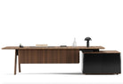 Ersa Desk Executive desk is made with a tìnatural wooden top and A-shaped legs, also made of wood, fixed to each other by a special joint that allows a wide range of movement. The worktop is in support of the service cabinet with storage compartments.