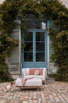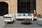 this collection features a light, elegant aluminium frame combined with the warmth of a handcrafted wood finish. Flows carefully balances old and new to give the pieces their defining characteristics. The unique shape of the oval legs turns the Flows sofas and loungers into one-of-a-kind pieces destined for long-lasting appreciation.