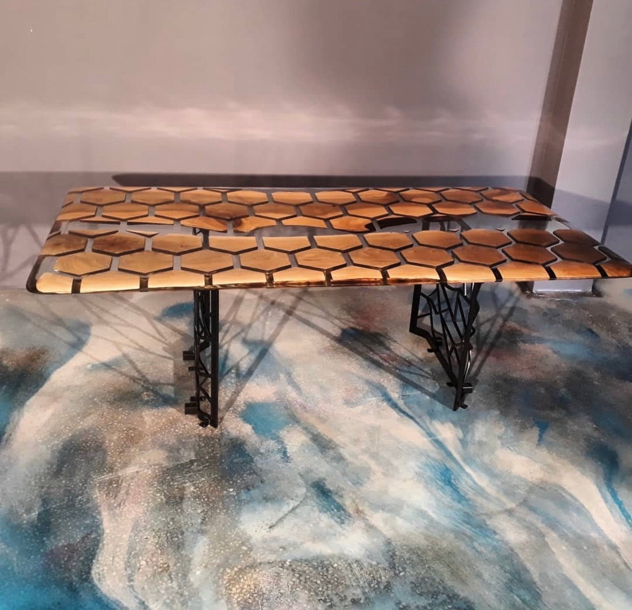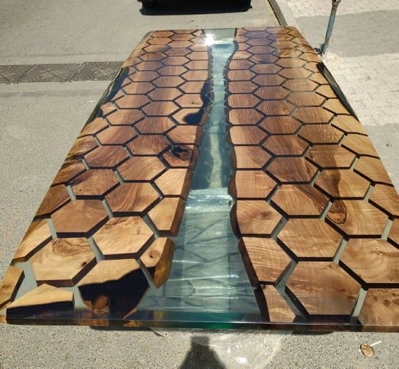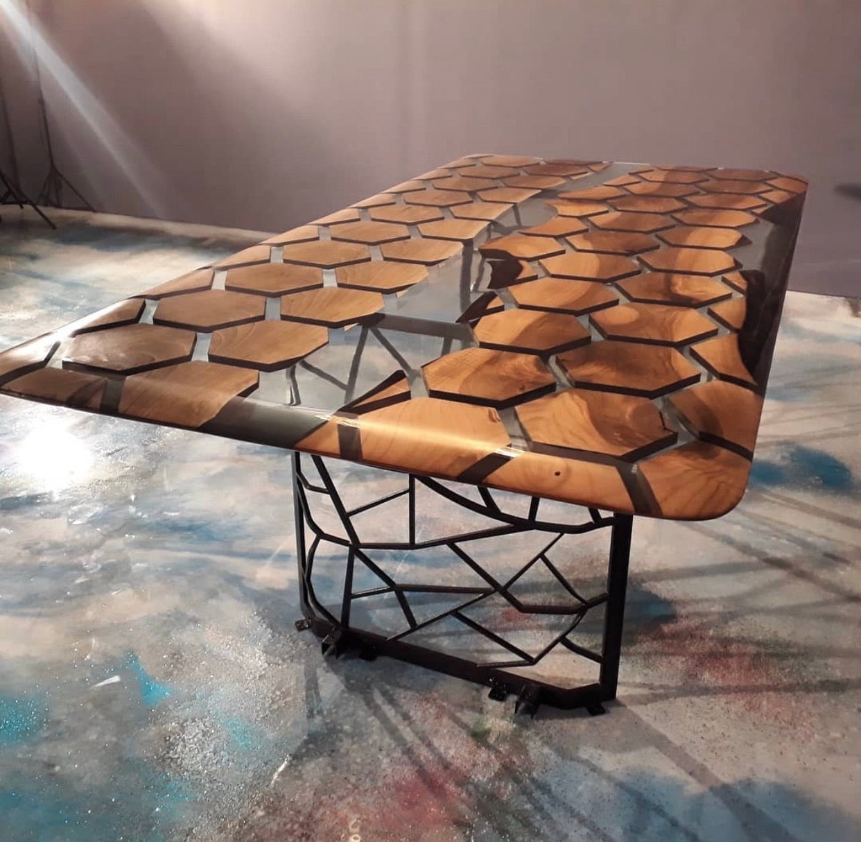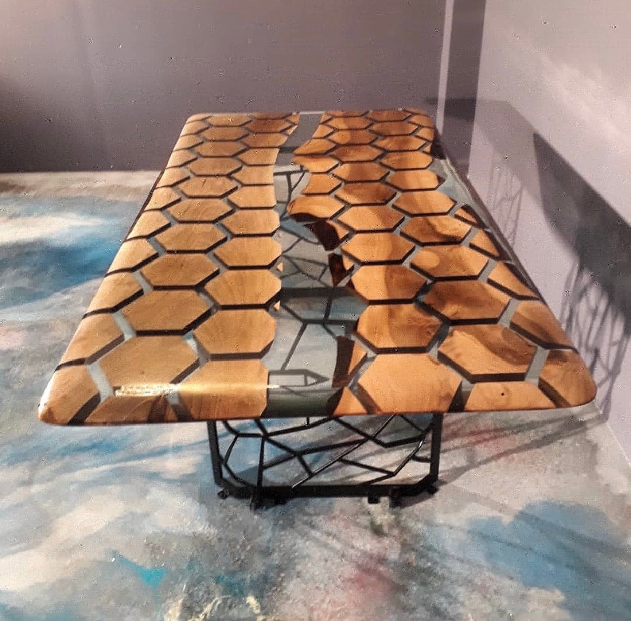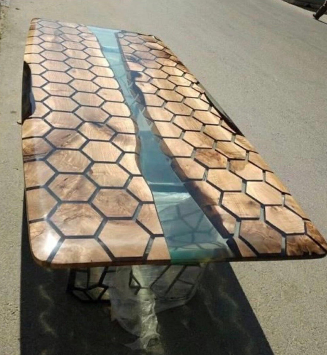 Honeycomb Hex Wood Epoxy Resin Dining Table