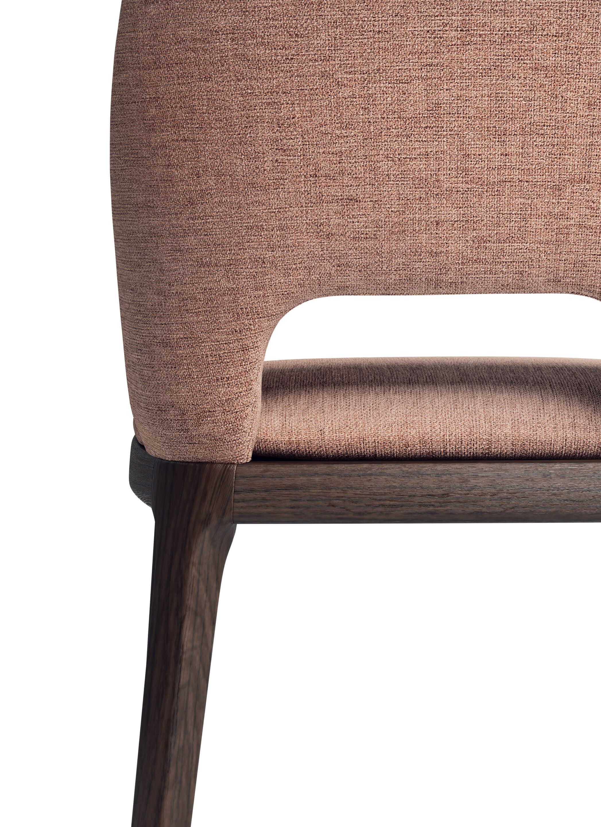 Kelly, elegant, bold and refined in its simplicity, draws inspiration from the classic armchairs of the 1950s. A comfortable and cosy product in which the curved backrest rises from the seat, creating an opening that gives a feeling of lightness.