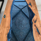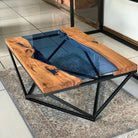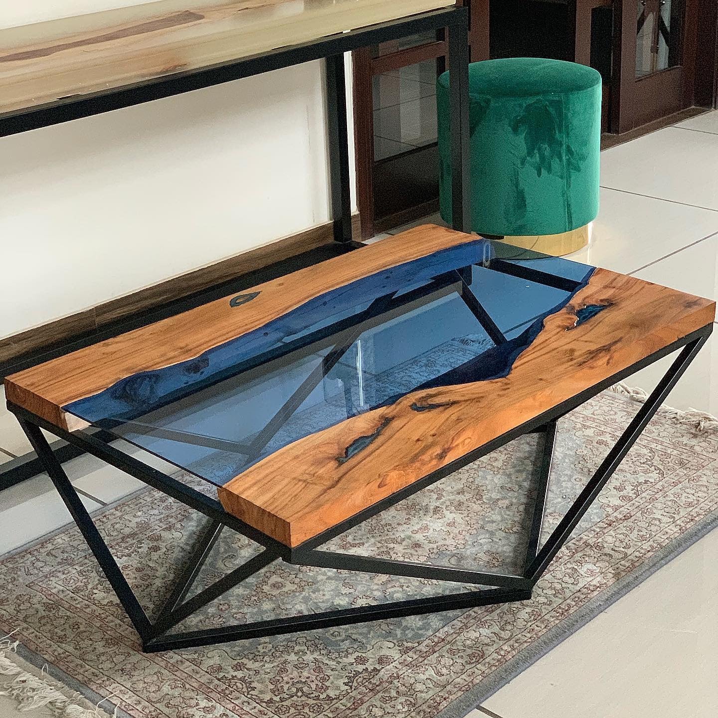 Materials:-Live Edge Acacia Wood-Epoxy Resin-Tempered Glass-Metal BaseDimensions: 4ft x 2.5ft