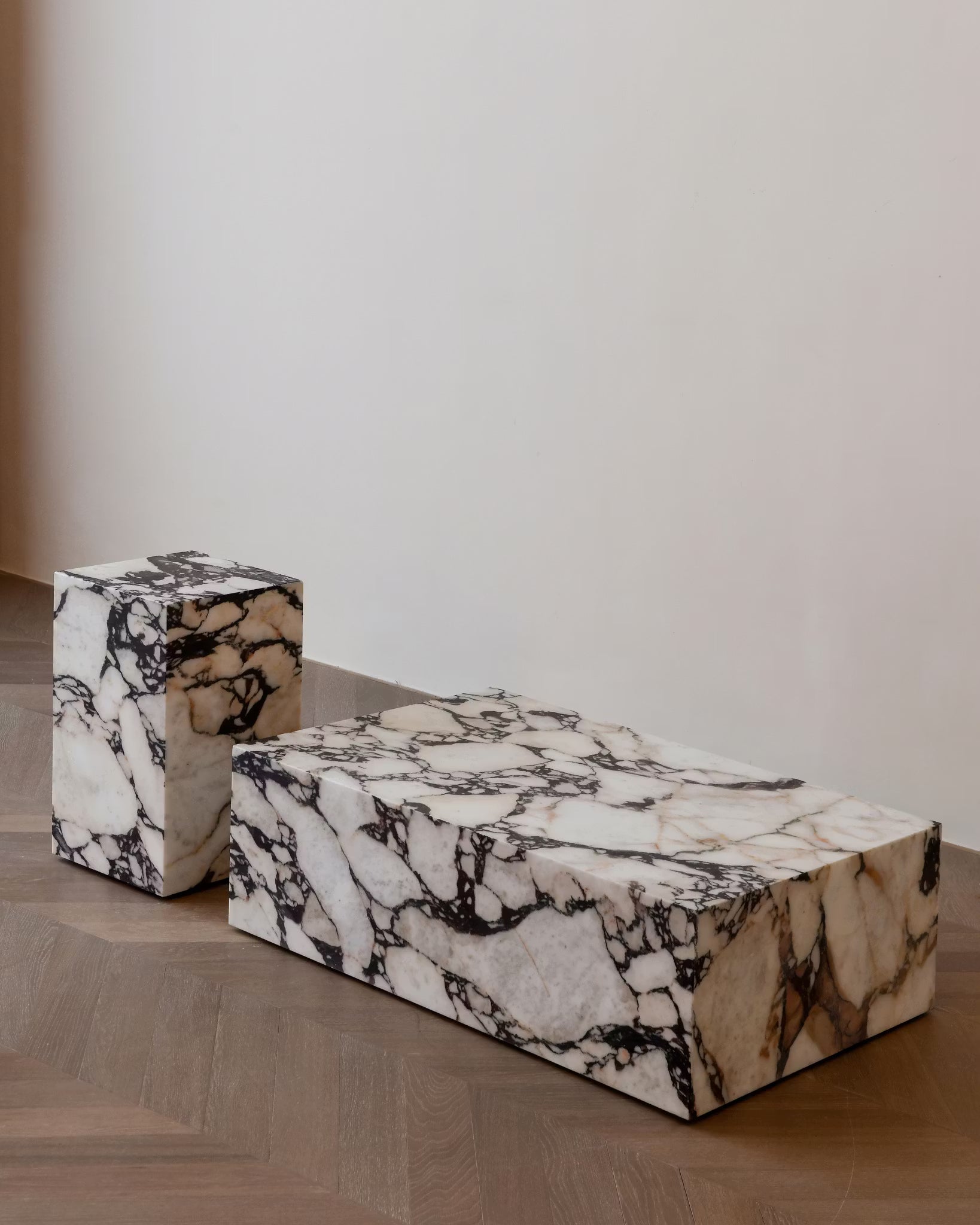 Clad in marble, these Plinth Tables will anchor your room with a touch of luxury.