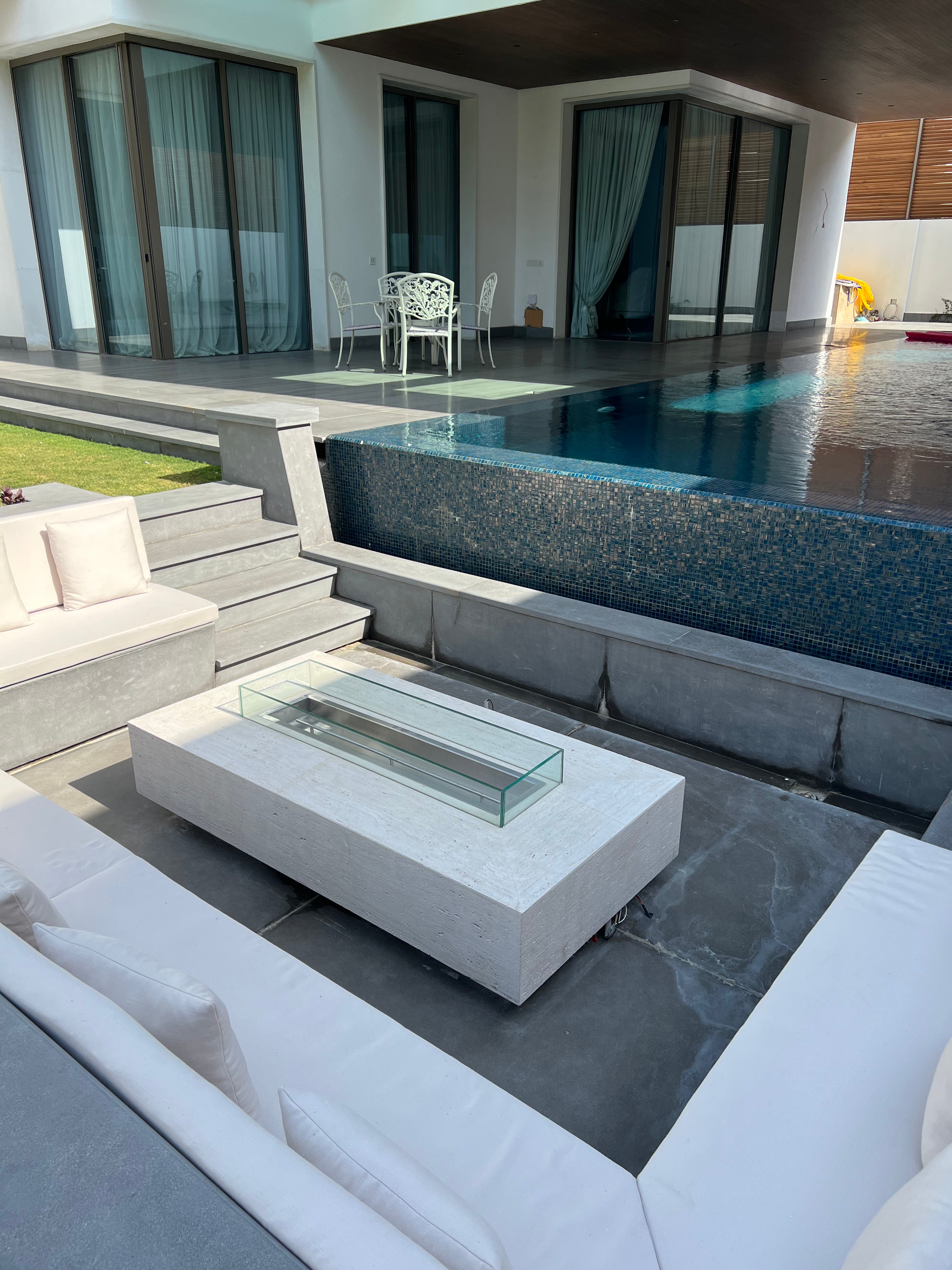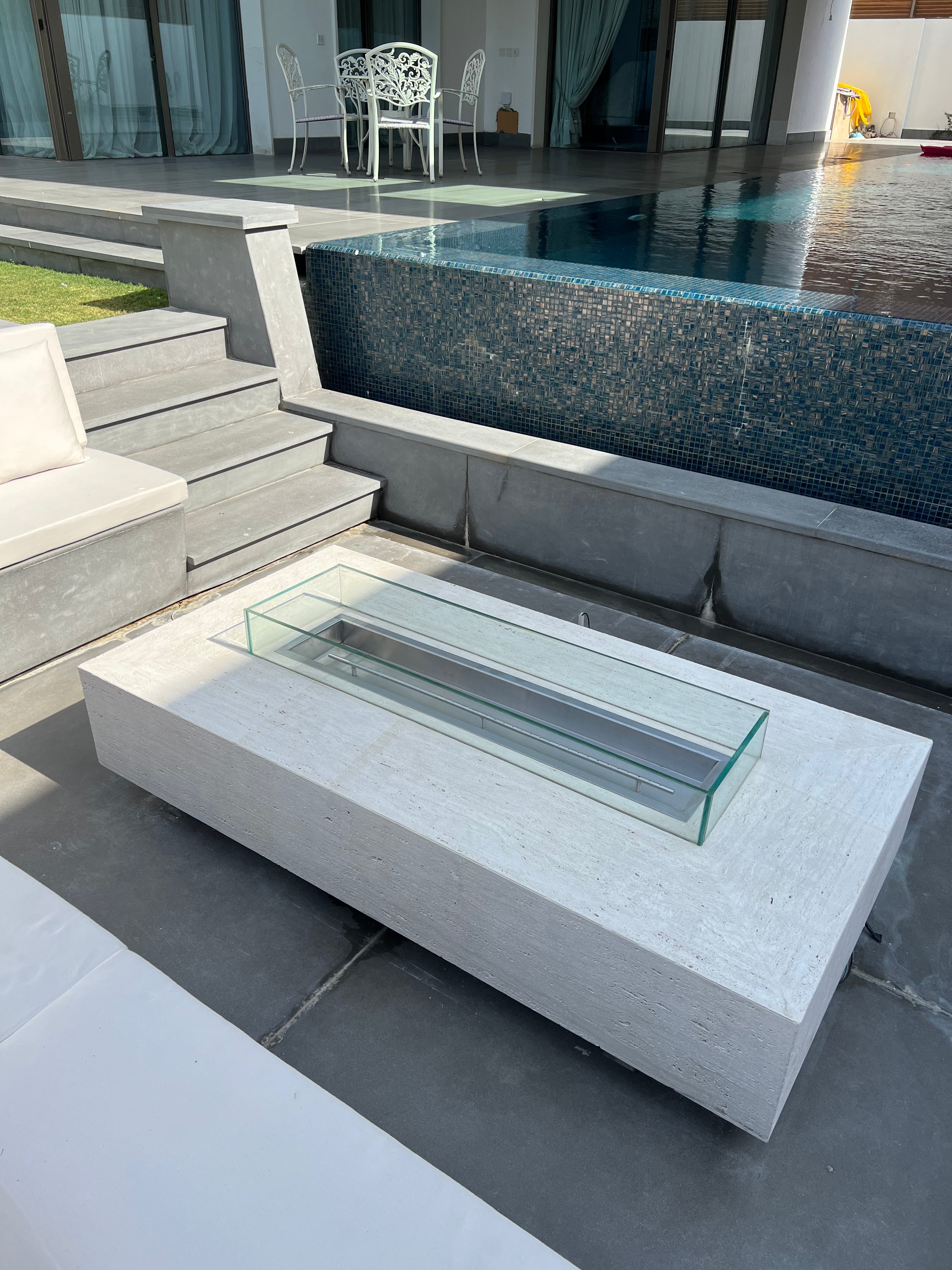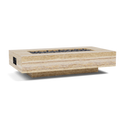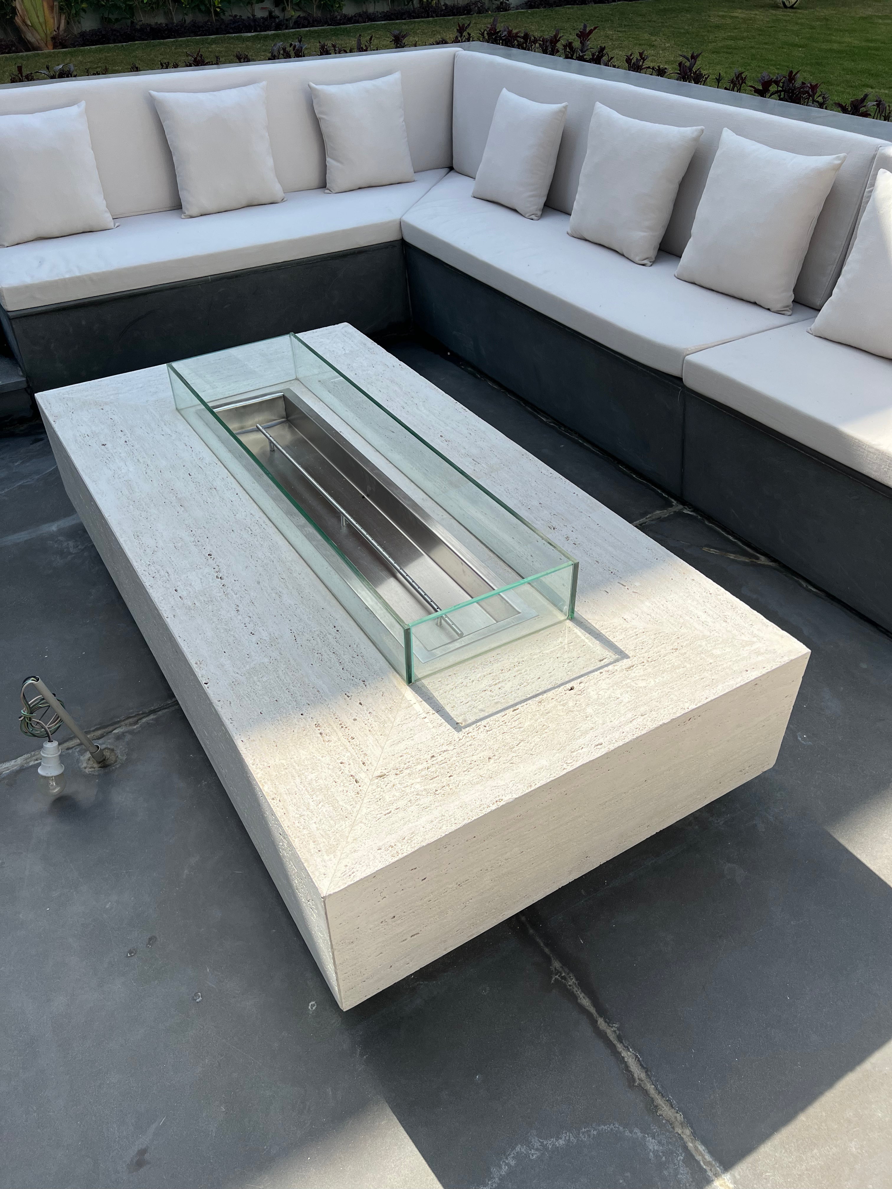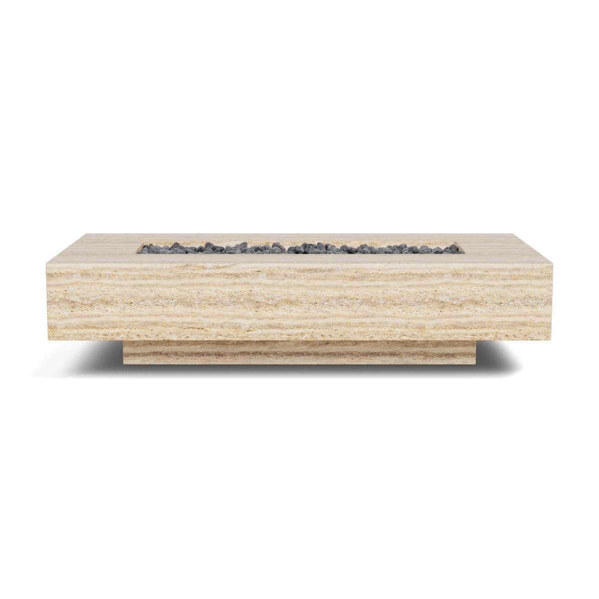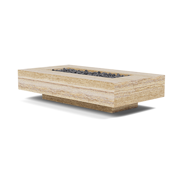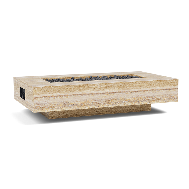 Featuring natural travertine as the grounding element of the design — and named after the Stonemasons who are masters of their craft — our collection of fire tables infuse energy, warmth and light to any outdoor space. The Mason Rectangle Fire Table is a study in simplicity and contrast, featuring natural travertine engineered into a streamlined plinth table with elegant rounded edges that suspends our gas burner. This easy–to–use organic fire feature can be seamlessly connected to a choice of natural gas sources. Functional with endless ambience, this handcrafted piece makes the outdoors truly great. Also available in Square and Round designs.
