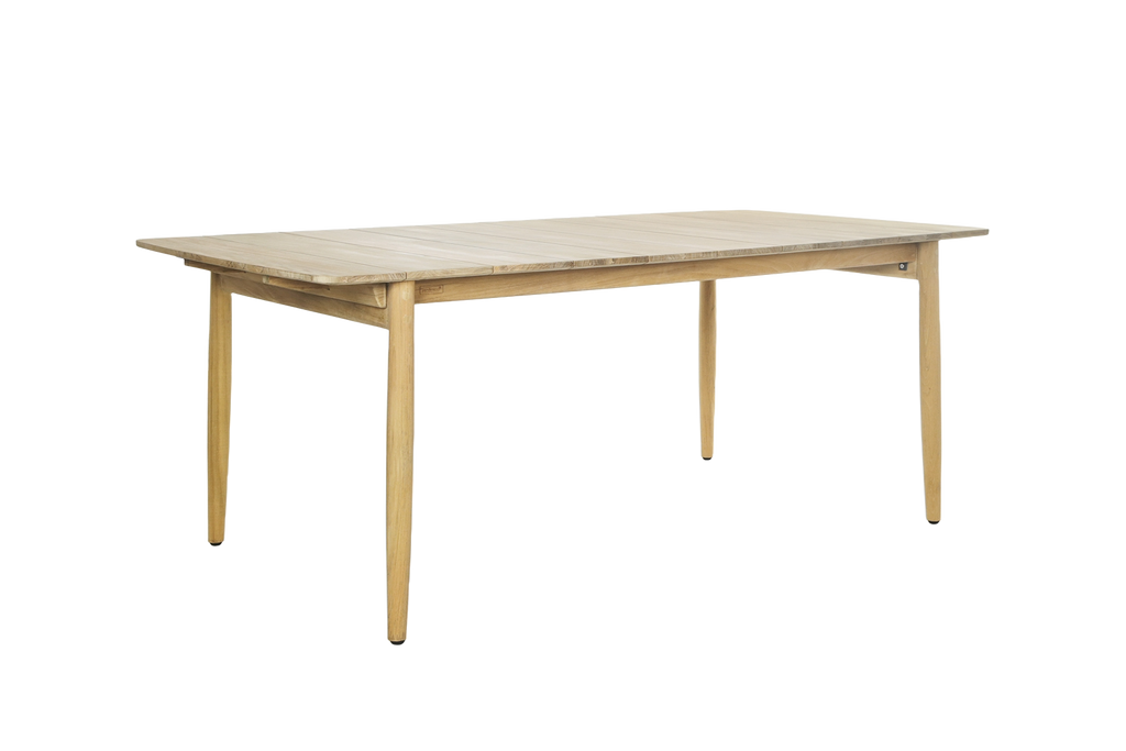 Characterised by its curving, the framework is made of natural teak that pay homage to old craftsmanship. The feeling of being close to nature continues thanks to the handwoven strap with a subtle touch of green. The accompanying cushions of the lounge pieces are made with a maximum of comfort to fully enjoy your relaxation outdoors.