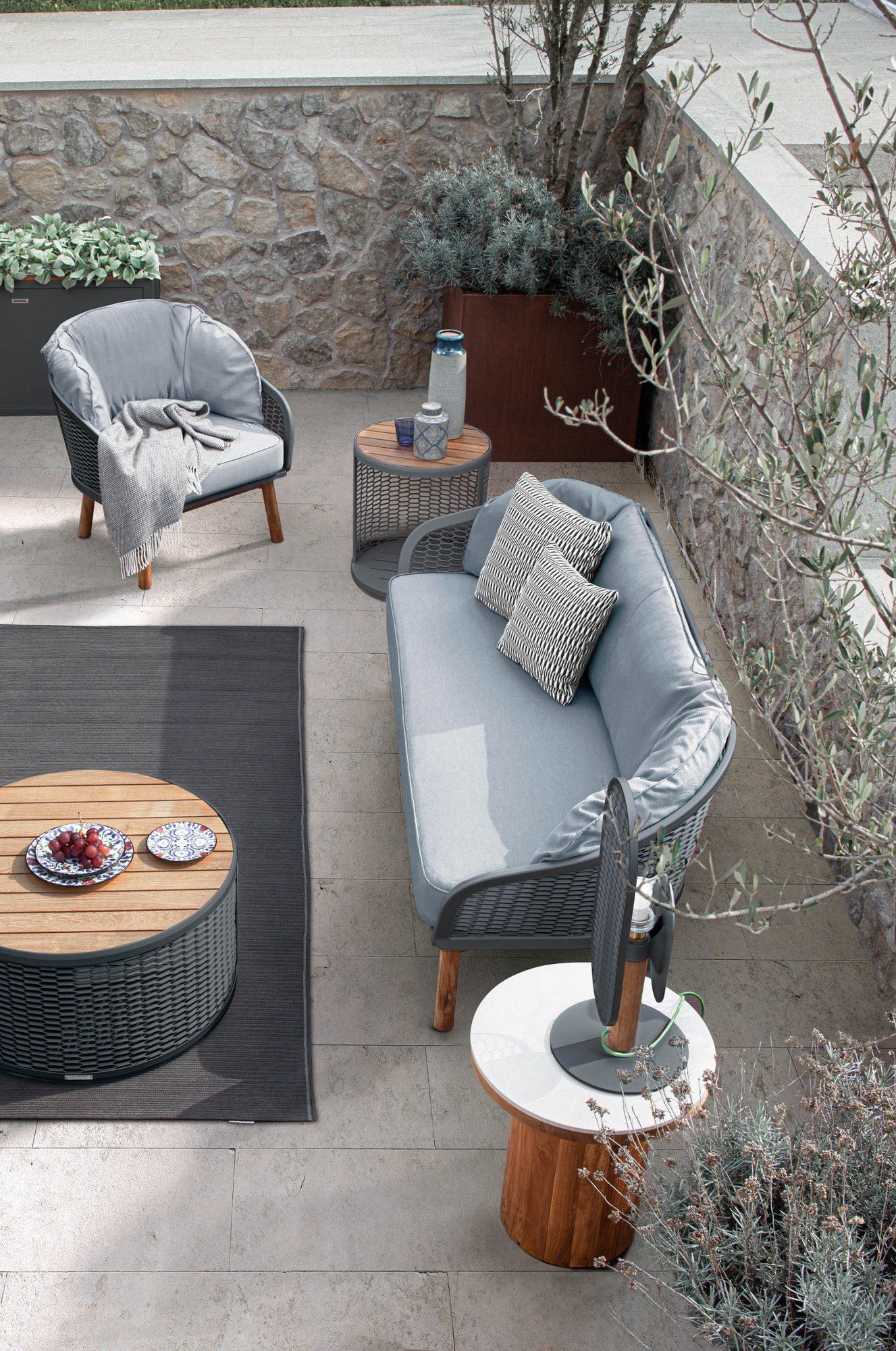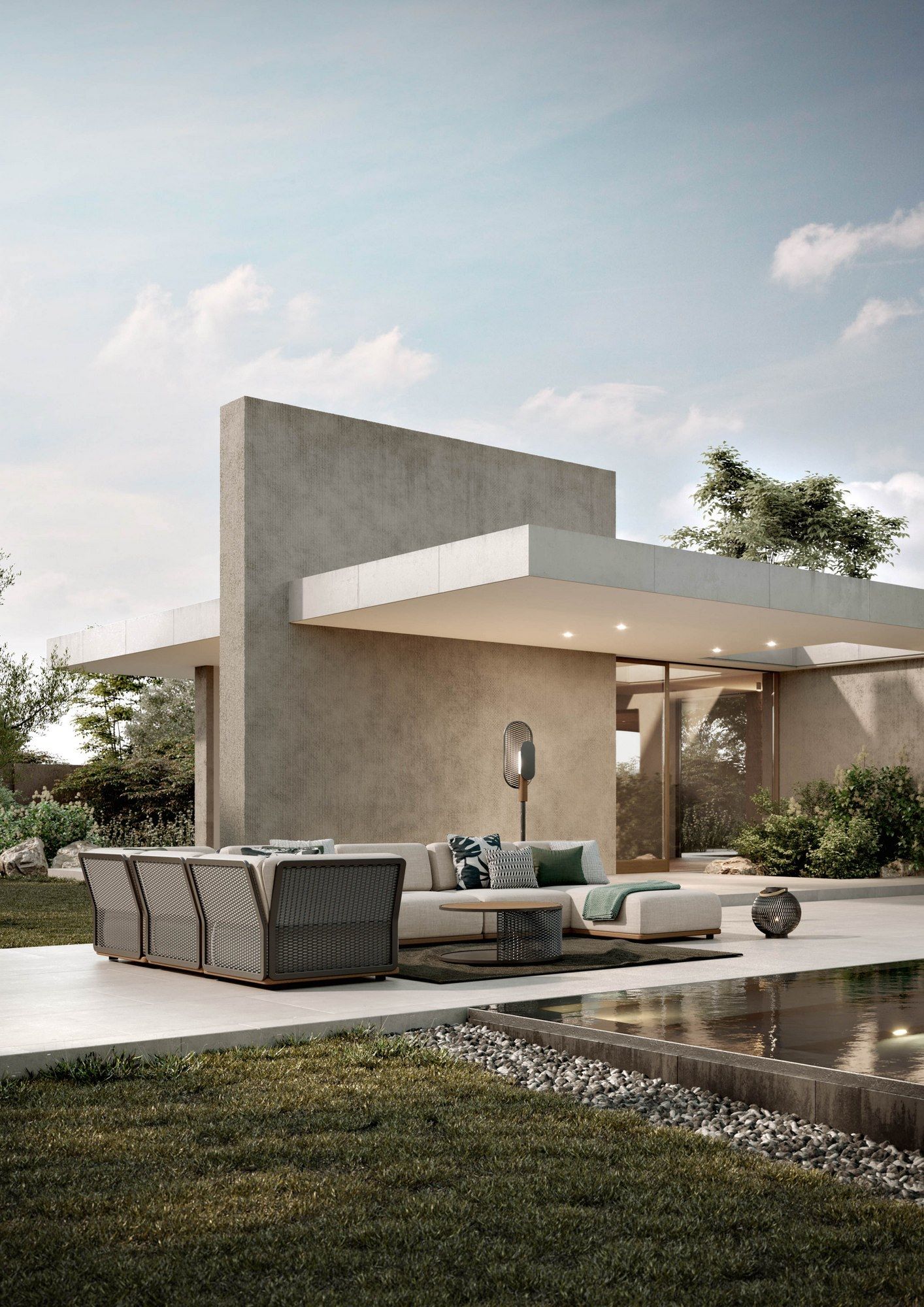 Inspiration grows looking at simple things. A white or graphite aluminium plate on a white architectural texture where make up a wide range of modules and create the most suitable composition. Main characters of this collection are modular sofas, servant tables tied to the environment, lounges and good lights.