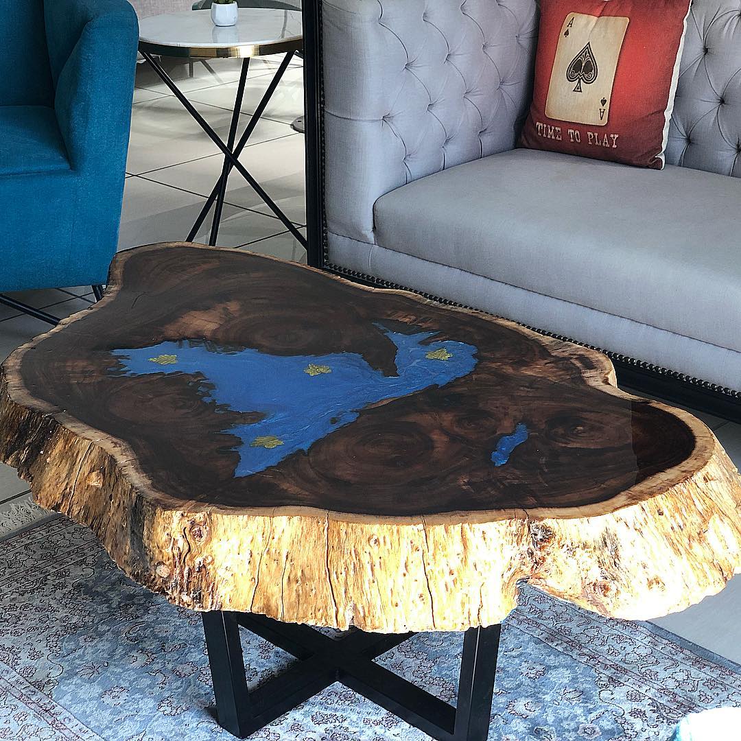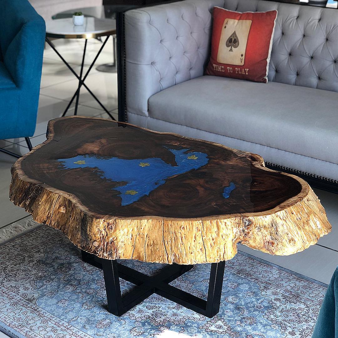 Tamarind live edge & Ultra Marine blue epoxy Coffee table